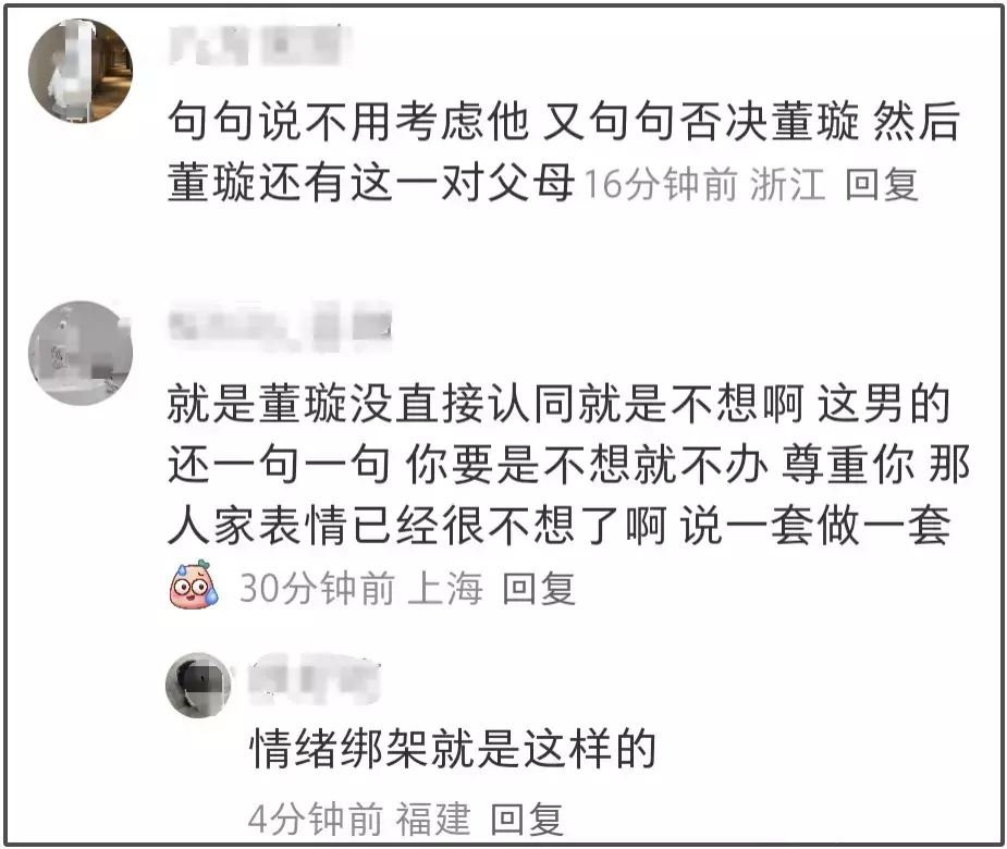 正如网友所说,张维伊彻底拿捏住了董璇一家人,句句说尊重董璇想法,又句句否决董璇,不光是道德绑架还是情绪绑架。