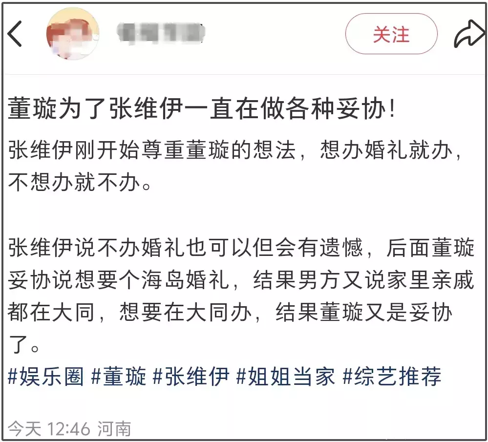 ——婚礼不是董璇想要的,而是张维伊想要的。